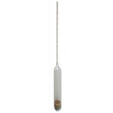 Конструкция: пустотелый стеклянный поплавок, узкая трубка длиной 300 мм, запаянная со всех концов. В широкой части трубки располагается груз строго отмеренной массы (точность прибора проверяется на заводе весовым методом). В узкой части находится шкала, нанесенная на бумагу. Градуировка в кг/м³, одно деление ареометра составляет 0,5 кг/м³.