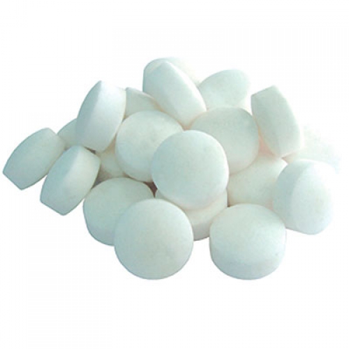 Выпускается в форме таблетки имеющей скошенные края, что позволяет не только лучше сохраняться в упаковке, но и даёт дополнительную экономию при загрузке в бак — солерастворитель. Такая форма не даёт таблетке крошиться и не оставляет осадка на днище бака.